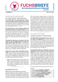 FUCHS-Briefe Seit über 65 Jahren informieren die FUCHS-Briefe unternehmerrelevant aufbereitet und reflektiert über das Schlüsselgeschehen in der Politik und Wirtschaft. Auf den Punkt gebracht Als Führungskraft stehen Sie ständig unter Zeitdruck. FUCHS-Briefe informieren Sie kurz, prägnant und leicht verständlich über alles, was Sie zur unternehmerischen Entscheidungsfindung und privaten Vermögensanlage wissen müssen. Kompetenz für die Praxis Wir sind Spitzenreiter wenn es darum geht, politische und wirtschaftliche Hintergrundinformationen qualitativ wertvoll für Unternehmer aufzubereiten. Bei uns finden Sie klare Prognosen und konkrete Empfehlungen für Ihren unternehmerischen Erfolg. Unabhängigkeit ist Ihr Trumpf Unsere Reaktion recherchiert jeden Artikel selbst. Die FUCHS-Briefe sind zu 100% unabhängig und werbefrei. Sie lesen ausschließlich die Meinung und Empfehlungen unserer Fachredaktion. FUCHS-BRIEFE erscheint montags und donnerstags mit jeweils 4–6 Seiten und kostet im Jahres-Abonnement 495,00 EURO oder im Einzelverkauf 9,50 EURO.
